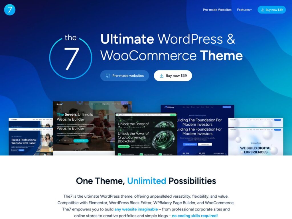 Buat kamu pengguna setia Elementor, The7 ini adalah “raja”-nya tema terlaris yang bakal manjain kamu banget. Keunggulan utamanya ada di kebebasan kustomisasi; kamu bisa utak-atik hampir semua bagian website langsung dari dasbor WordPress dengan sangat mudah.